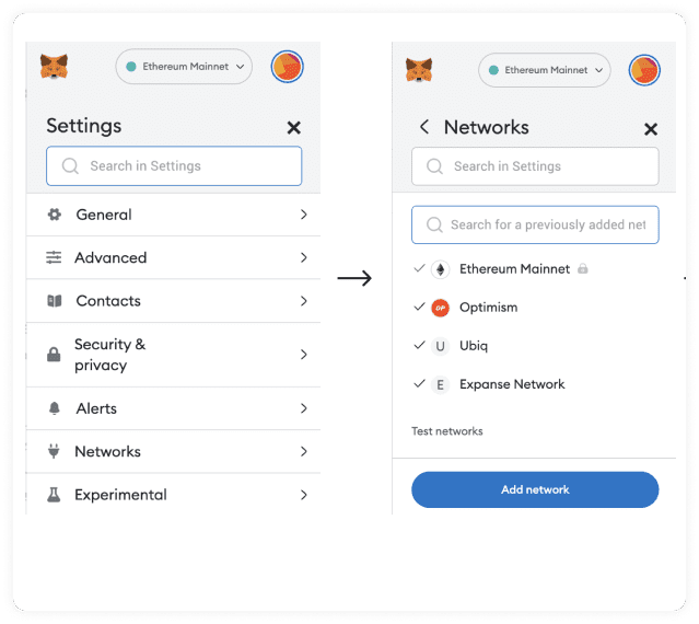 3. **Navigate to Networks**: In the Settings menu, navigate to "Networks" and click on "Add Network."