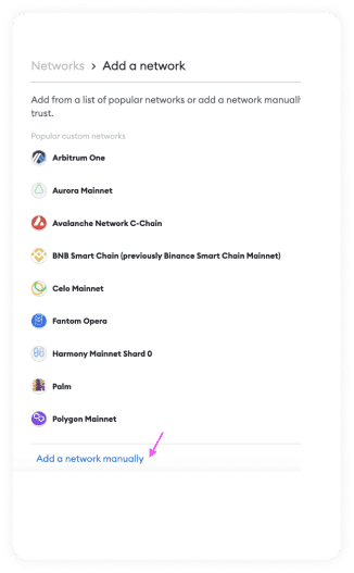 4. **Add Network Manually**: If the Arcturus network isn't listed, scroll to the bottom and select "Add a Network Manually."